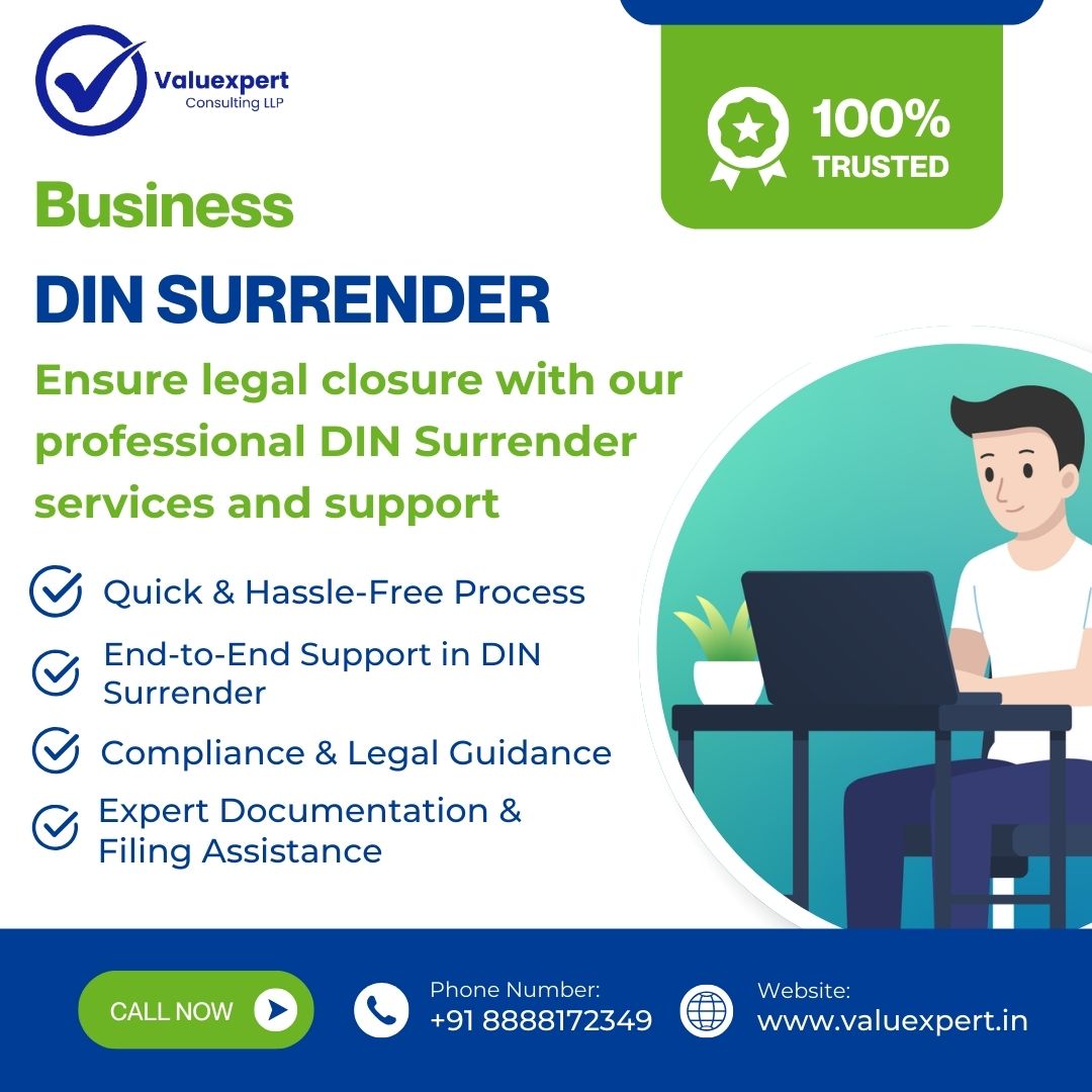 ValuExpert, a professional services firm, offers comprehensive support for various legal and regulatory compliance obligations. With DIN surrender, their adept team provides end-to-end assistance, encompassing form filing, document preparation, and affidavit creation, ensuring adherence to legal requisites. Leveraging their expertise, ValuExpert facilitates a seamless and compliant DIN surrender process, affording individuals peace of mind amidst regulatory intricacies.