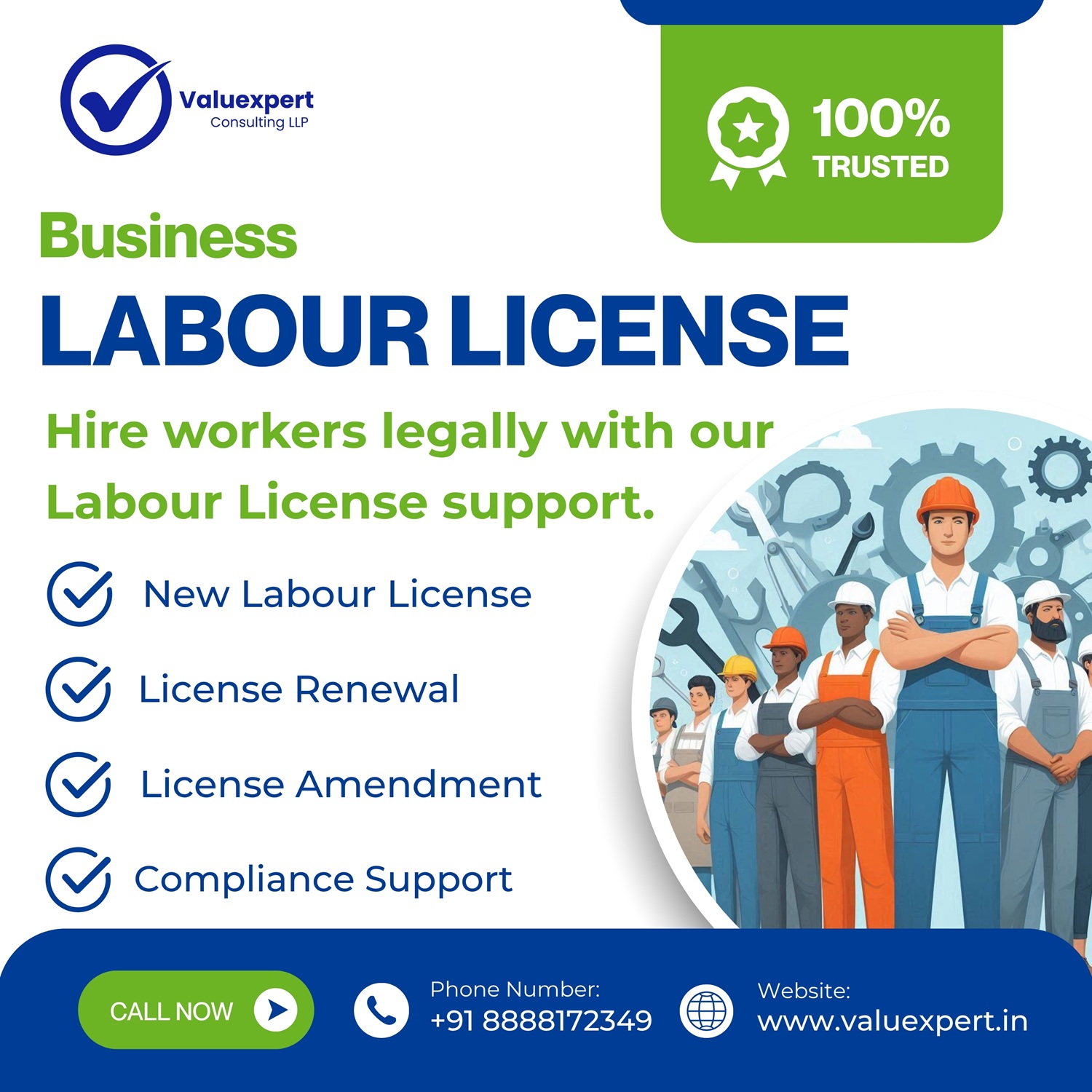 Fee Structure: Varies based on the number of workers, ranging from ?1000 for 50 workers to ?15000 for 401 or more workers.
